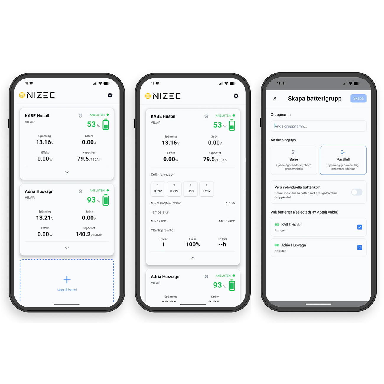Batterierna klarar av en kontinuerlig laddning med 150A och en kontinuerlig urladdning på 150A.